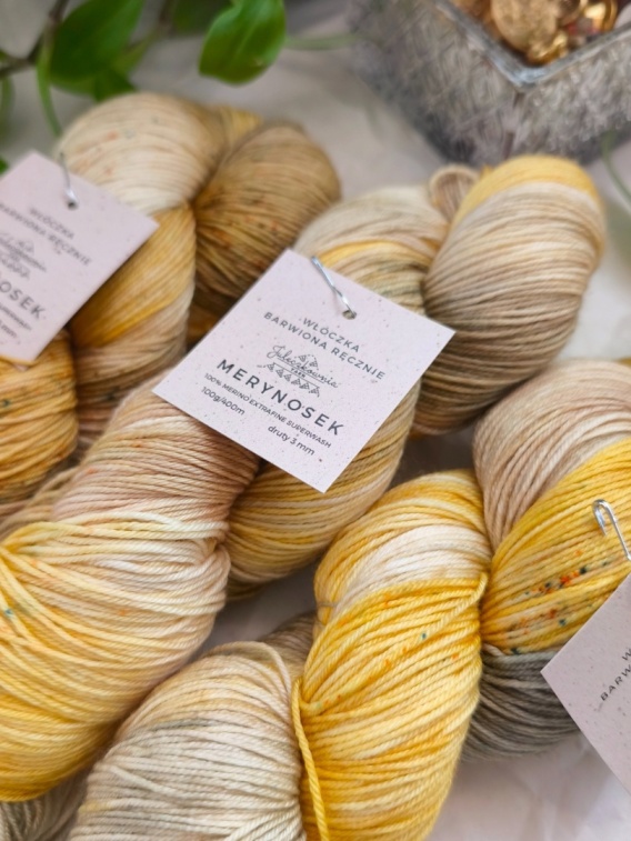 Odkryj wyjątkową włóczkę MERYNOSEK – klasyk nad klasykami! To ręcznie barwiona włóczka typu fingering, skręcona z 4 nitek (4 ply), wykonana w 100% z wełny merino superwash o grubości włókna 19,5 mikrona. Dzięki takiej grubości włókien MERYNOSEK zachwyca niezwykłą miękkością, gwarantując komfort zarówno podczas noszenia, jak i dziergania.