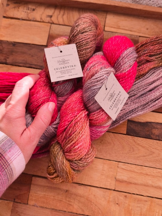 CELEBRYTKA to włóczka, która łączy w sobie najdelikatniejsze naturalne włókna i tworzy przędzę, która zachwyca miękkością, subtelnym połyskiem i szlachetną głębią kolorów. Każdy motek to zaproszenie do celebracji codzienności poprzez tworzenie pięknych, trwałych i luksusowych projektów, które pozostaną z Tobą na lata.