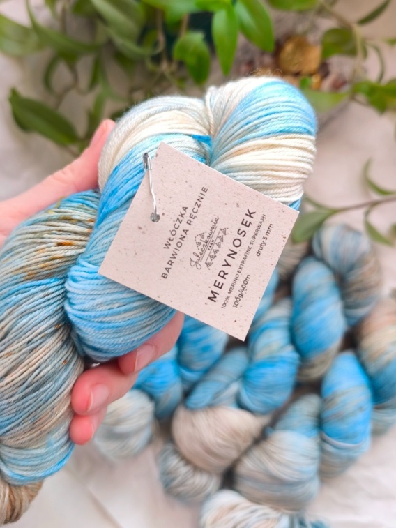 Włóczka MERYNOSEK jest wełną superwash, co oznacza, że teoretycznie można ją prać w pralce. Jednak aby zachować jej wyjątkowe właściwości, a szczególnie kolor, zalecamy pranie ręczne w letniej wodzie z delikatnym detergentem.